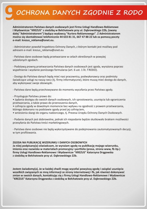 REGULAMIN - OCHRONA DANYCH OSOBOWYCH
